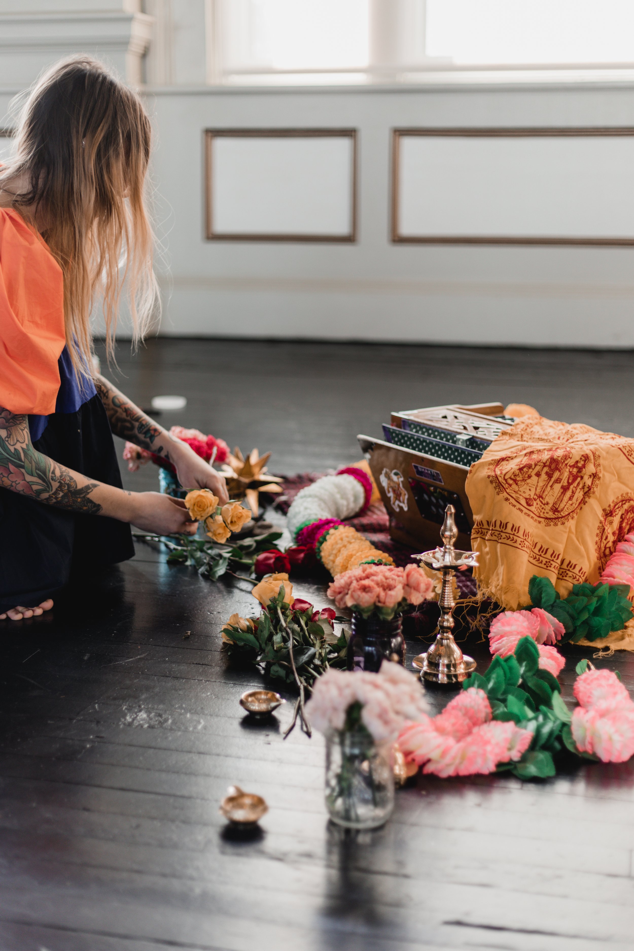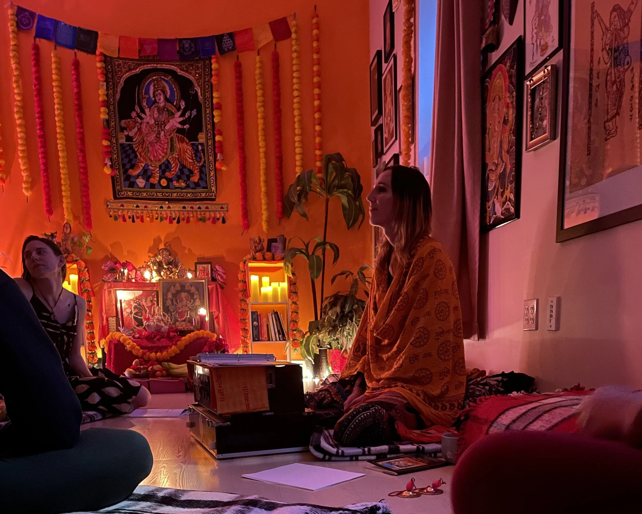 Chanting, devotion, and developing a relationship with the divine. Everything from chanting together, learning kirtan mantras, to supporting you in your own personal devotional practice. (please note- I don’t teach harmonium)